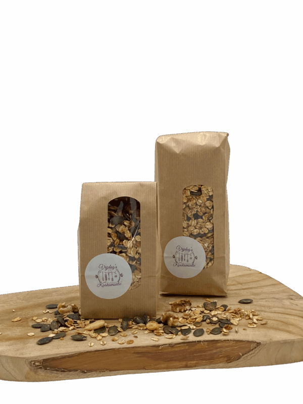 Heerlijke granola met de lekkerste pompoenpitten, namelijk die van eigen bodem! Huisgemaakt door Vrijdag’s Kooksensatie en dat is te proeven. Niet alleen lekker maar ook nog eens perfect om de dag krachtig te beginnen met een lading aan vezels + vitamines. En daar dragen onze kleine voedingsbommetjes ook flink aan bij: